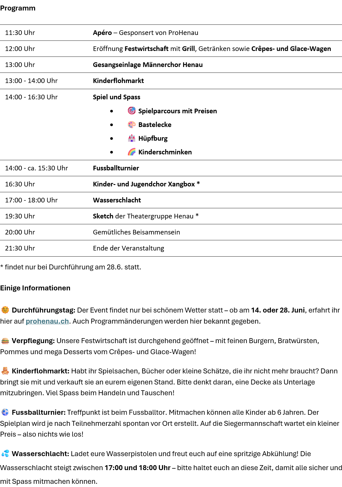 Die grossen Plakate am Dorfrand und die im Briefkasten erhaltenen Flyer verkünden es bereits oder bald gross und farbig: Dieses Jahr findet in Henau ein richtiges Dorffest statt.